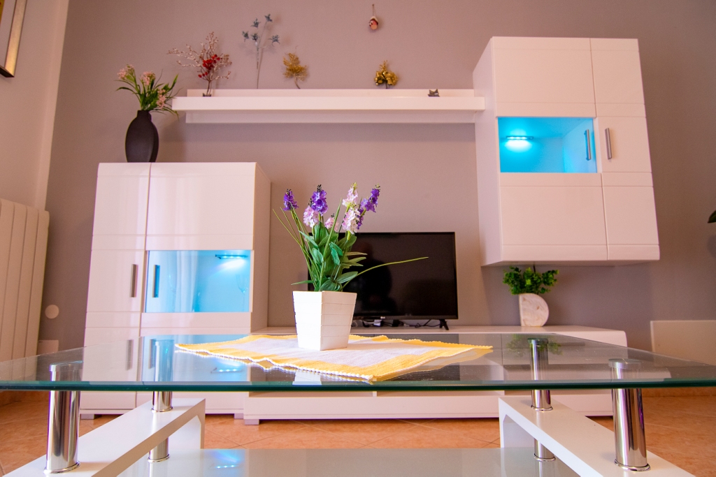 The apartment has one bedroom with double bed and a sofa bed for 2 person in the living room, 2 terraces, wifi, a/c, fully equipped kitchen, and a public free parking is 50 meters from the apartment